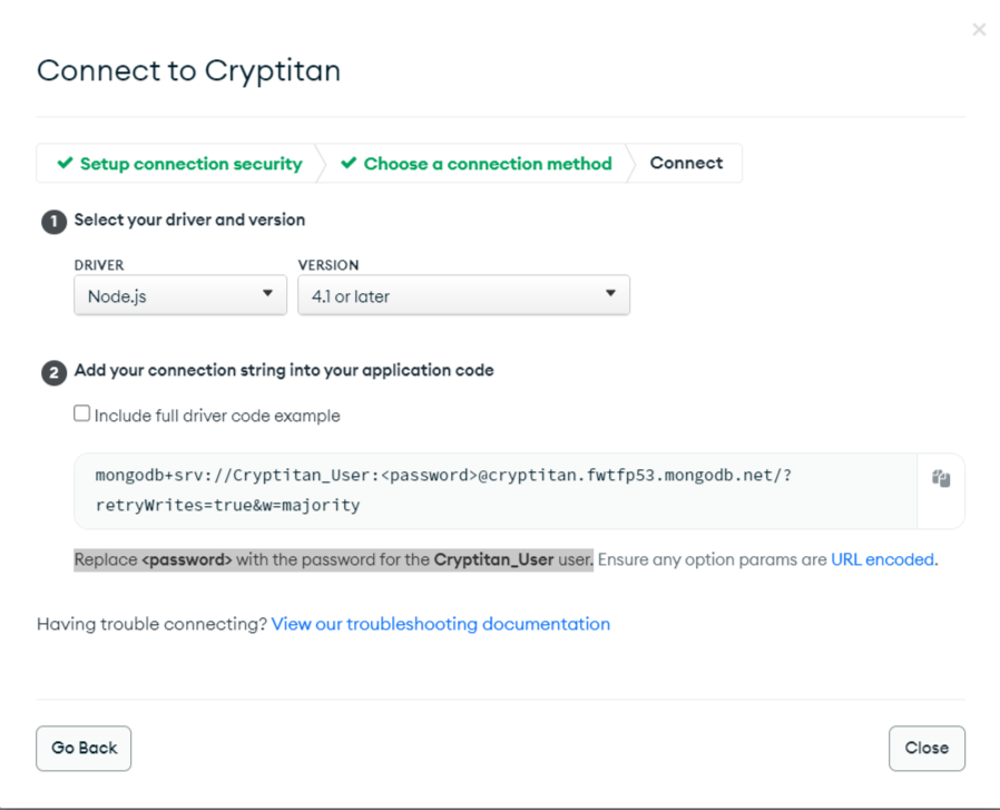 "mongodb+srv://Cryptitan_User:<password>@cryptitan.fwtfp53.mongodb.net/?retryWrites=true&w=majority"